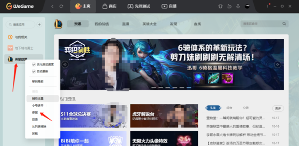 首先打开腾讯游戏平台,进入到主页面后,进行点击需要修复的游戏,举例如lol,然后点击游戏修复,在弹出的修复界面点击立即检测,检测完成之后,在点击一键修复,这样就可以修复好所需要修复的游戏了;
