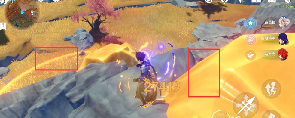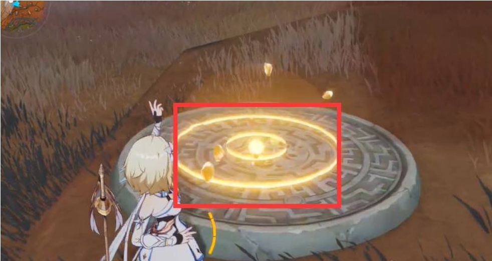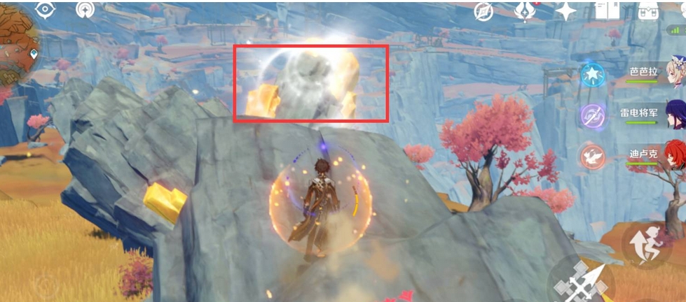 4、通过风场可以快速到达这个大石头处,使用岩元素攻击这块大石头后,这块大石头就会产生共鸣。