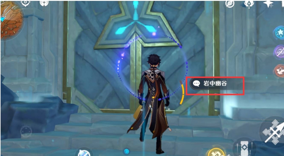 6、从洞口进入山洞后,与遗迹对话即可开启秘境——岩中幽谷了。