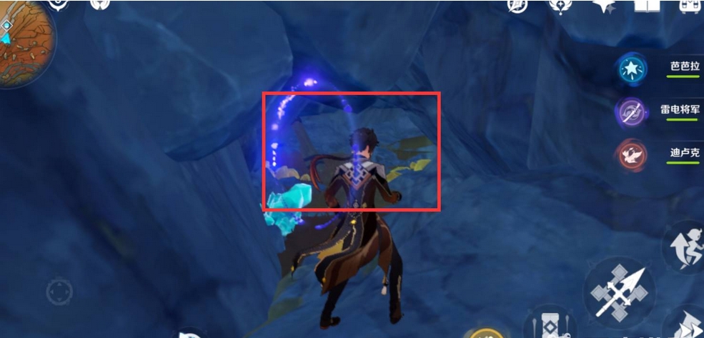 5、中间会有一小段剧情,剧情结束后,就可以看到共鸣将之前位置的石块震碎了,从而出现下面的小洞口。