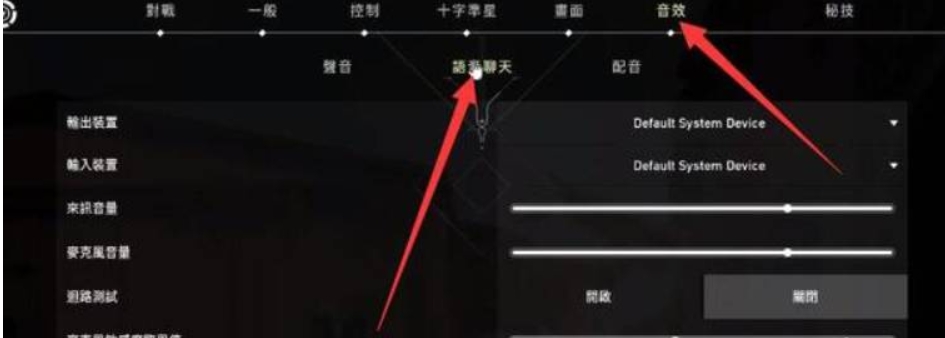 1、在游戏内按下esc键,会跳出游戏的设置界面,游戏分为房间和队伍语音,在设置界面点击最后一项音效,选择语音聊天。