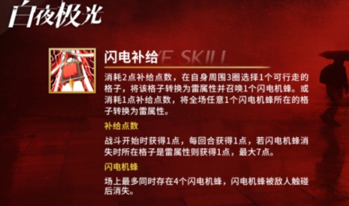 技能机制:罗伊的独特之处在于其闪电机蜂机制。他能够消耗补给点数在自身周围召唤闪电机蜂,这些闪电机蜂被敌人触碰后会消失,但能够转换为雷属性格子,为队伍提供灵活的转色能力。