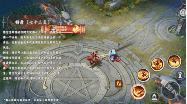 技能描述:当悟空的生命值较低时,他可以使用七十二变技能。使用后,悟空会获得一个分身,并隐身变化为离自身最近的一个单位。这个状态在受到攻击或再次使用技能时会解除。