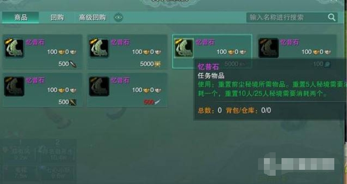 2.也可以在扬州的大战牌子对面买如来神掌的老乞丐的旁边的秘境重置道具兑换使者购买,玩家使用忆昔石会扣除玩家的精力。