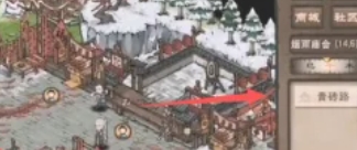 到达青砖路(或类似的集市、商铺区域)后,寻找并点击可进行交易的NPC或商铺入口,选择“买卖”选项。
