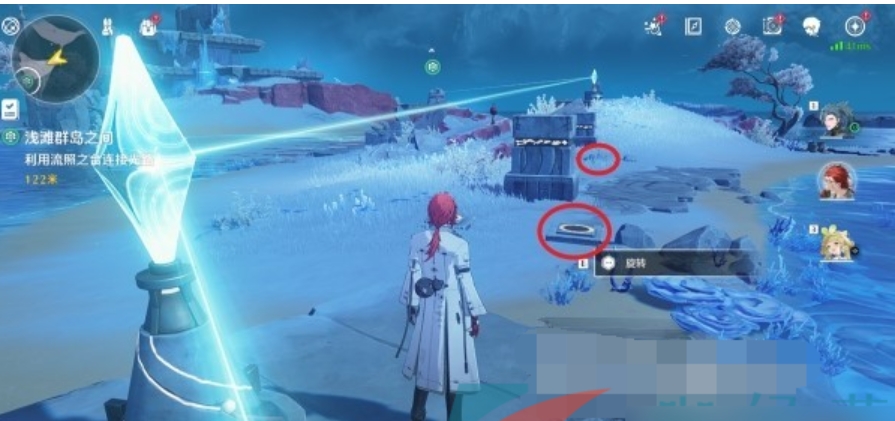 旋转机关柱2次,让光线对准该机关柱。