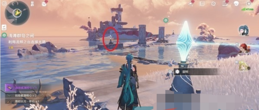 跟随光线指引走到第一个机关柱位置。