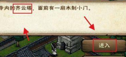 从大雄殿或其他指定位置,前往“齐云塔”。点击“进入”齐云塔,开始新的探索。