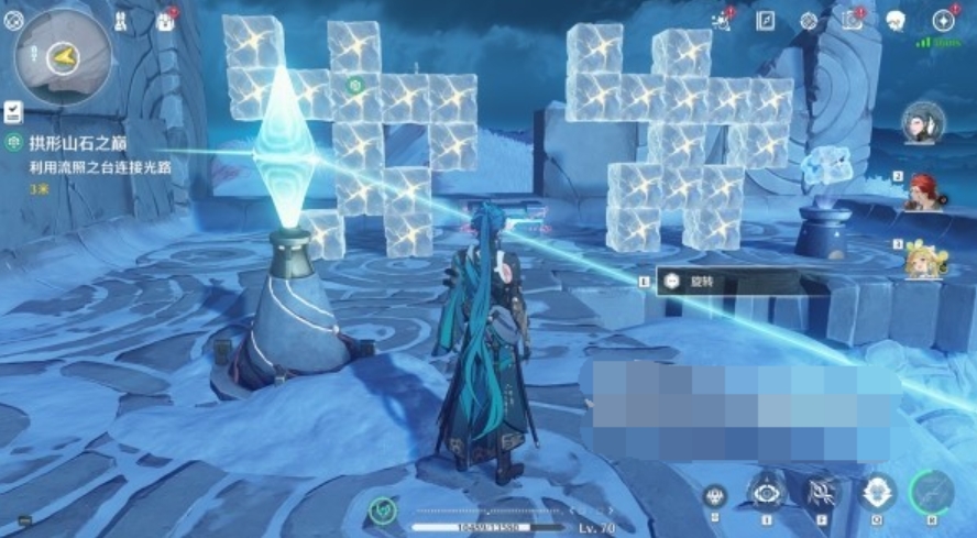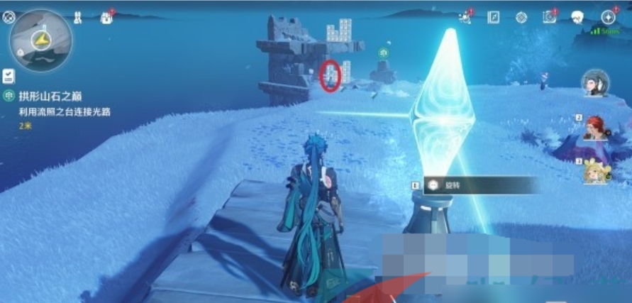 挑战完成后,站在机关柱处往左侧看,旋转机关柱1次将其点亮。