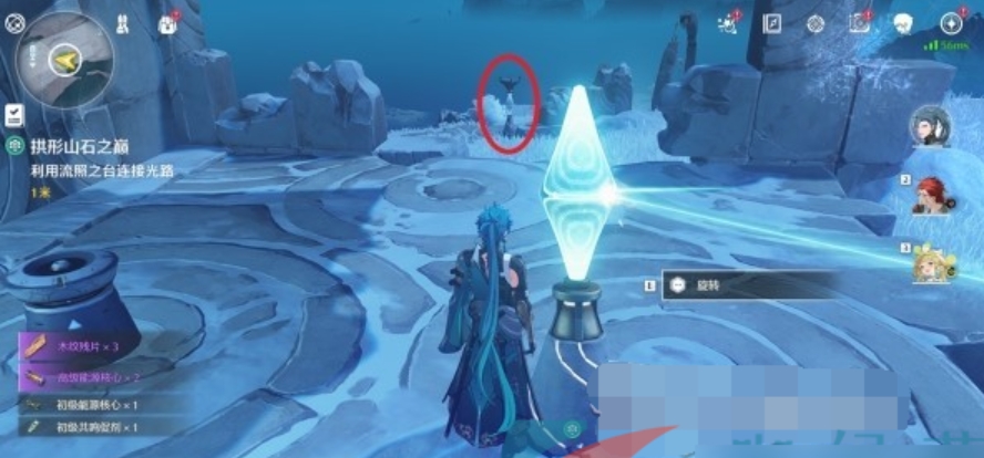 往左下角看,在声骸挑战前可以看到下一个机关柱,旋转1次点亮。