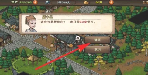 在与店小二的对话中,选择“住店”的选项。随后,系统会提示你需要支付一定的住宿费用,通常为50文(但请注意,这个费用可能会因游戏版本或活动而有所变动)。