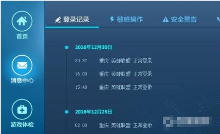 2、点击消息中心,在消息中心的登录记录一栏可以查询到该账号所有游戏的登录记录。