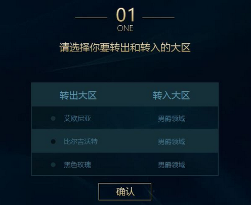 选择转出大区以及转入大区后,点击确认即可完成第一步。