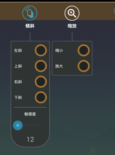2.倾斜设置中的敏感度,针对的是倾斜角度大小,可根据游戏要求更改。