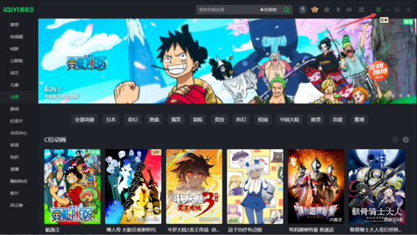 1、首先,启动电脑端的PC版爱奇艺软件,然后找到界面顶部右上角的【三】菜单图标,并点击它。