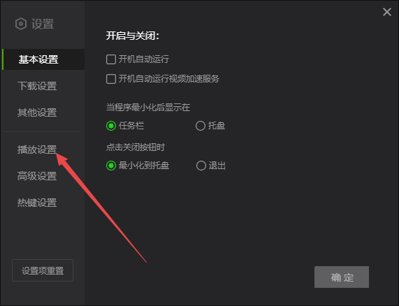 3、然后,在弹出的设置窗口中,点击左侧列表中的【播放设置】选项。
