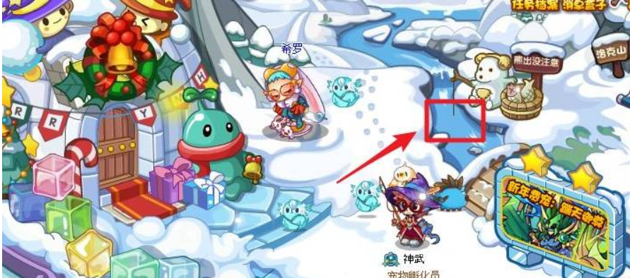 1、游戏玩家传送到“雪人谷”区域。