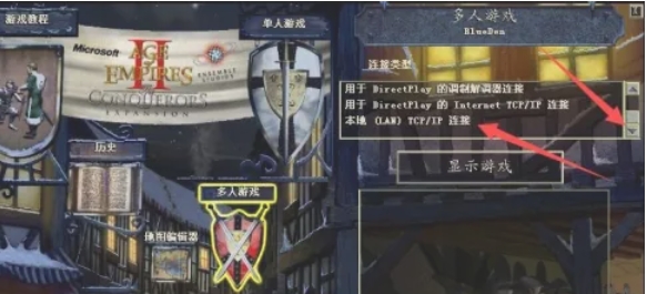 在多人游戏界面,你会看到多种连接方式,选择【本地(LAN)TCP/IP连接】。