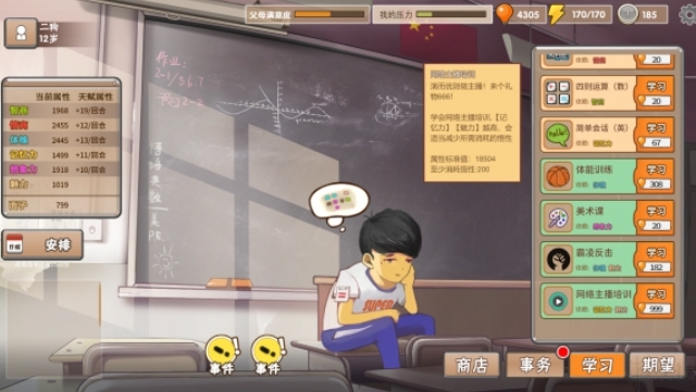 攒悟性购买演员类科目,直到科目不会减少父母满意度时开始刷魅力。