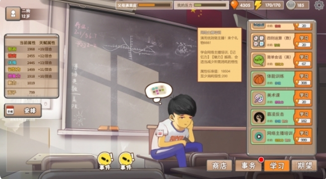 “直播刷榜”是魅力加成较高的科目,且不会减少父母满意度。