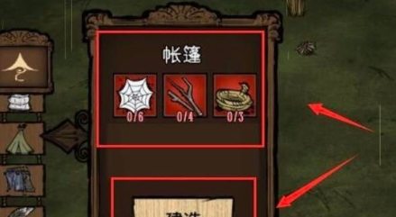 使用6个蛛网、4个树枝和3个绳子在生存栏中制作帐篷。帐篷是恢复精神值的重要工具。