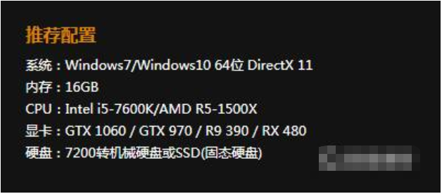 4、显卡:NVIDIA GeForce GTX 1060 3GB / AMD Radeon RX 580 4GB。