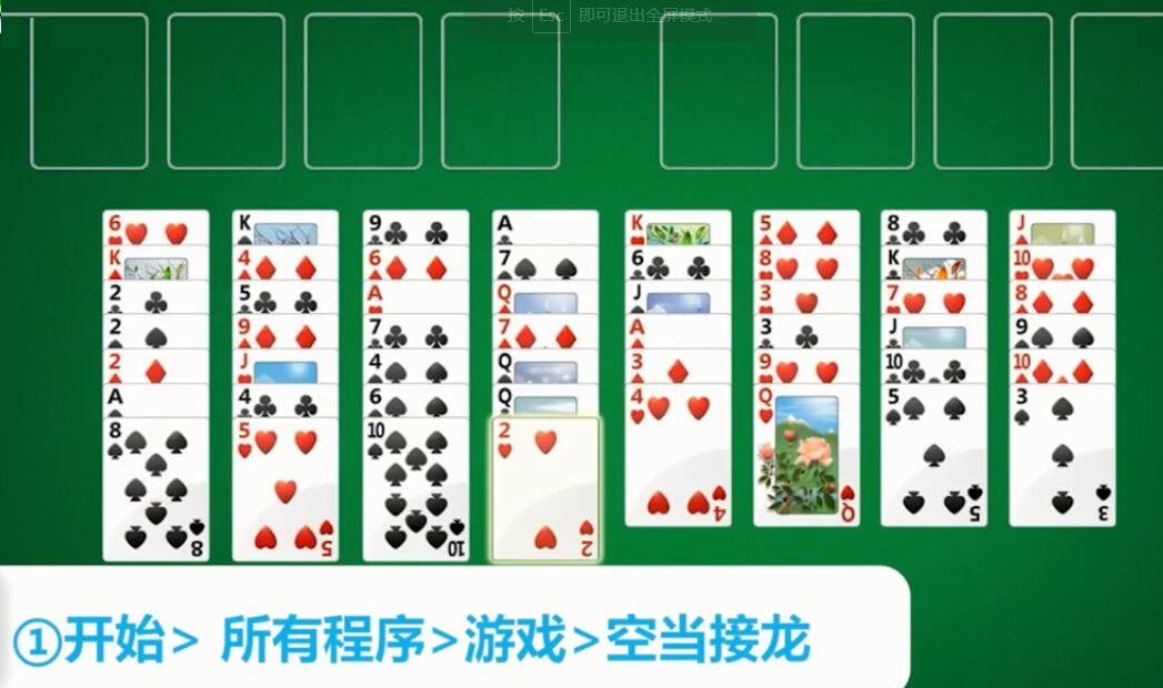在电脑的开始菜单中找到所有程序、游戏、空当接龙。