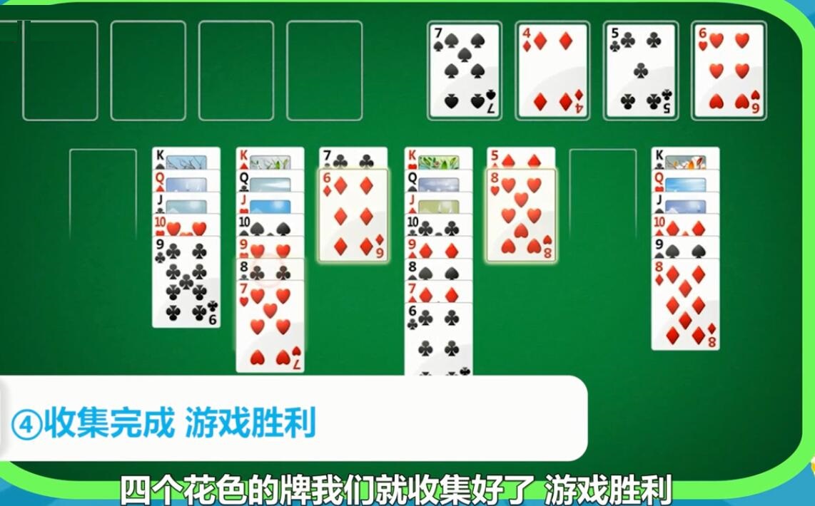 最后完成A-K的收集之后,四个花色的牌即可收集完成,游戏胜利。