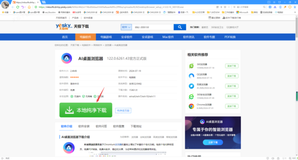 通过调查发现,正版AI桌面浏览器在财神爷站站(也就是本站)进行下载,本站为大家准备了AI桌面浏览器的最新版本,大家可以点击本文顶部软件右侧的【直接下载】按钮进行下载。也可以使用浏览器搜索【财神爷站站】,然后在本站搜索【AI桌面浏览器】,点进进入到软件详情界面后,直接点击【本地纯净下载】按钮进行下载。