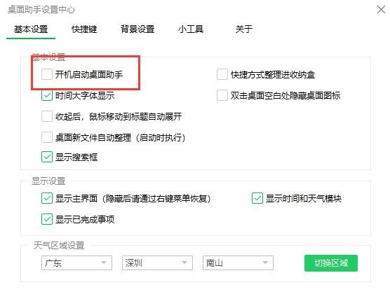 要注意的是,如果想在下次开机时不自动启动360桌面助手,我们在退出360桌面助手之前,先在设置中心里面关闭掉“开机自动启动桌面助手”的功能,这样在开机以后就不会启动这款软件了。