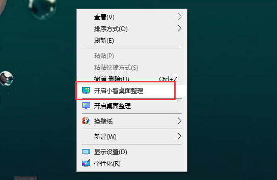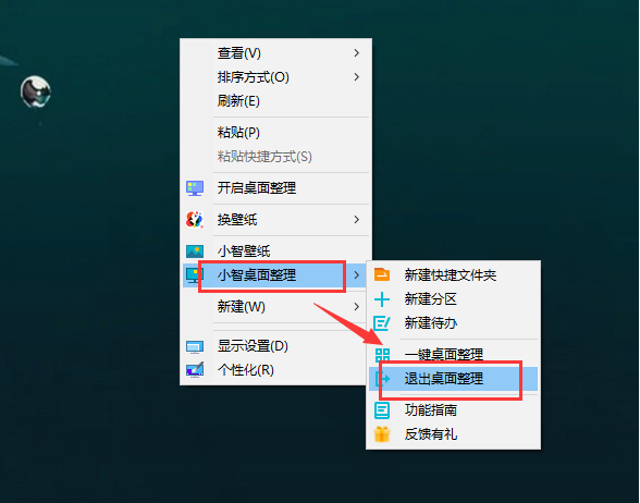 第一步,出现这种情况先在电脑桌面上单击鼠标右键,选择“小智桌面整理”,并退出“桌面整理”。