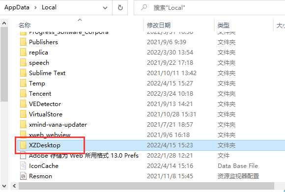 3,这时就会弹出一个文件文件夹,向下滑动找到“XZDesktop”文件夹,把光标放到文件夹名称上,单击鼠标右键,把这个文件夹删除。