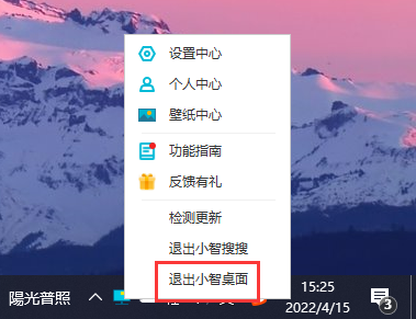 1,有些小伙伴电脑上下载了小智桌面,开机以后发现很多桌面分区里的文档出现了丢失的情况,先不要慌张,我们可以先退出小智桌面客户端。