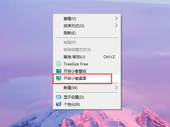 4,然后再返回桌面空白处,点击右键在菜单栏中找到“开启小智桌面”,重新启动这款软件以后会发现桌面分区就恢复正常了。