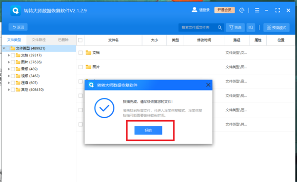 第三步,软件开始扫描之后,我们需要耐心等待,完成之后会有弹窗提示扫描已经完成。