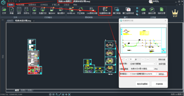 接下来给分割好的图纸设置保存的路径,这样我们后续能够更快的查找到分割好的图纸文件。