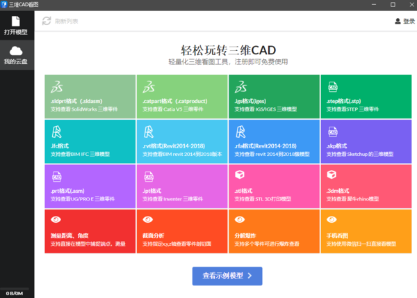 1,第三款软件叫做三维CAD看图,它可以为用户提供100兆的免费存储空间,支持大容量的文件上传。如果是会员用户还能够提升打开的上限,将单次文件的大小提升到10兆以上。