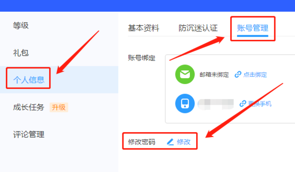 方法一:打开360游戏大厅并登录自己的账号之后,点击主界面的用户头像图标,在下拉选项中选择个人信息栏。跳转到个人信息界面后,选择账号管理,点击修改密码并前往360个人中心修改密码。之后,按提示输入手机验证码,再编辑新密码就好了。