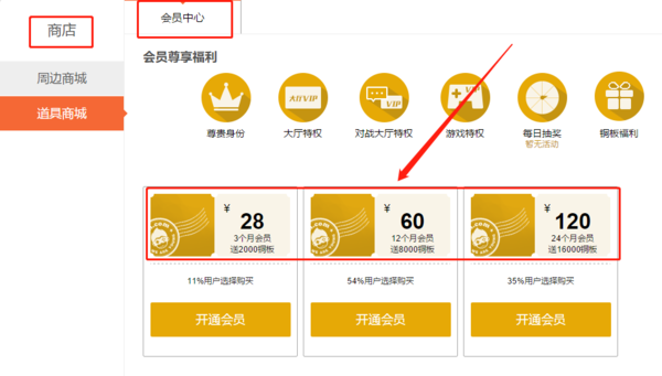 途径二:同样的,打开悟饭游戏厅后,点击右上方的商城图标,进入到软件商店界面。在商店界面,点击道具商城中的会员中心,通过购买开通会员,就能获得大量的铜板赠送。
