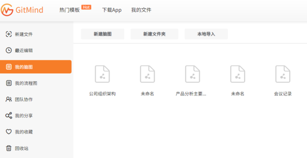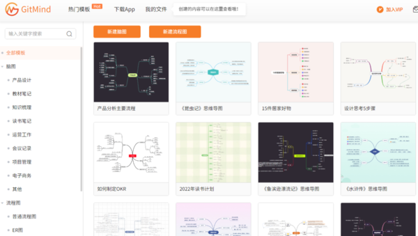 然后就是Gitmind和XMind都拥有非常多的模板,至少可以做到不同种类的导图都拥有1款模板,这样不仅可以让我们在制作导图时可以轻松借鉴获取灵感,甚至可以直接对模板进行再加工,以达到高效工作的目的。