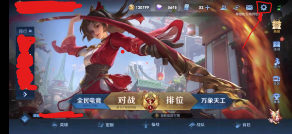 第一步,打开王者荣耀进入大厅点击右上角的【设置】;