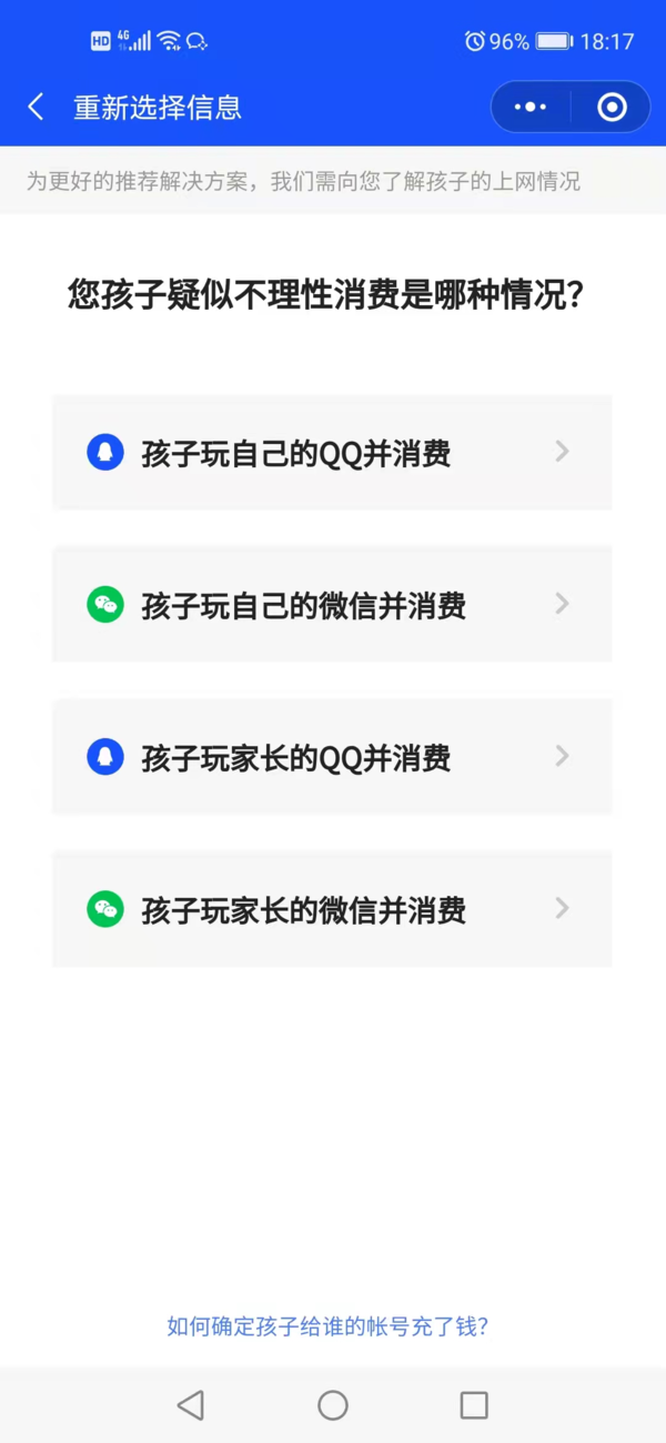 4、先登录选择不理性消费情况,再利用不理性消费涉及账号扫码登录;