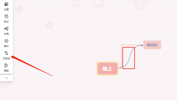 关系线可以连接任意的两个主题,在主干支干线条之外,连接有相关逻辑关系分支的线,代表这两个主题之间,关系线一般会和实线区分开,使用虚线加箭头从而更好的分辨,关系线形状相似与S型的曲线。