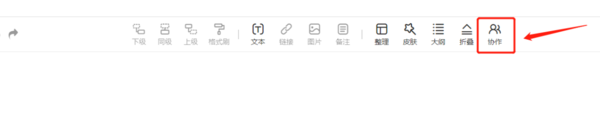 在我们制作完成一个导图后,如果需要发给其他伙伴以此来协助我们编辑修改文件,我们可以在文件的编辑界面右上方就可以找到一个“协作”按钮,点击后左侧会出现相关的列表。