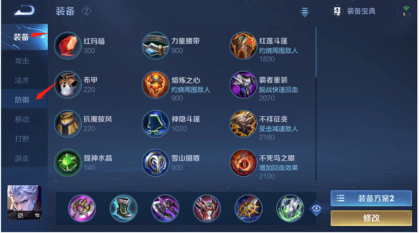 2.?然后在左侧选择然后在左侧选择装备,然后选择防御。