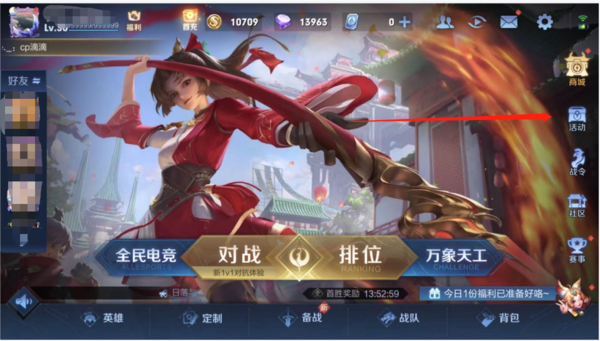 1.?打开王者荣耀,进入到主界面后,点击活动。
