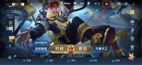 第一步,运行王者荣耀游戏,进入大厅之后点击右上方的好友系统选项;
