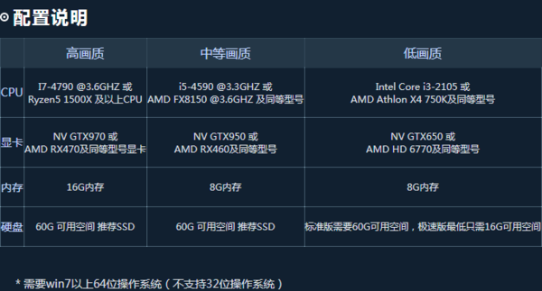 显卡:NV?GTX970或AMD?RX470及同等型号显卡;