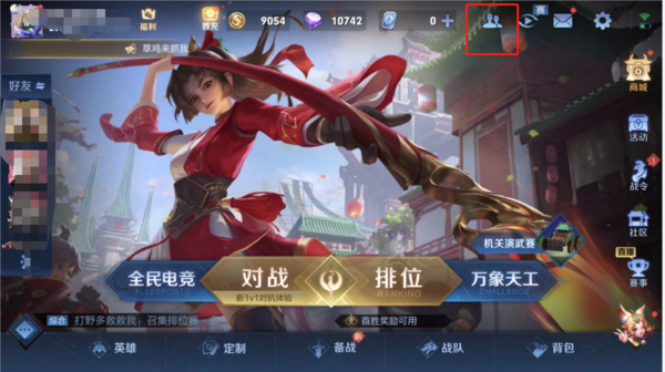第二步:进入到游戏的主页面后,找到朋友的选项。