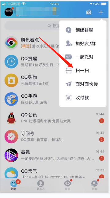 2.?看到扫一扫,并点击它。
